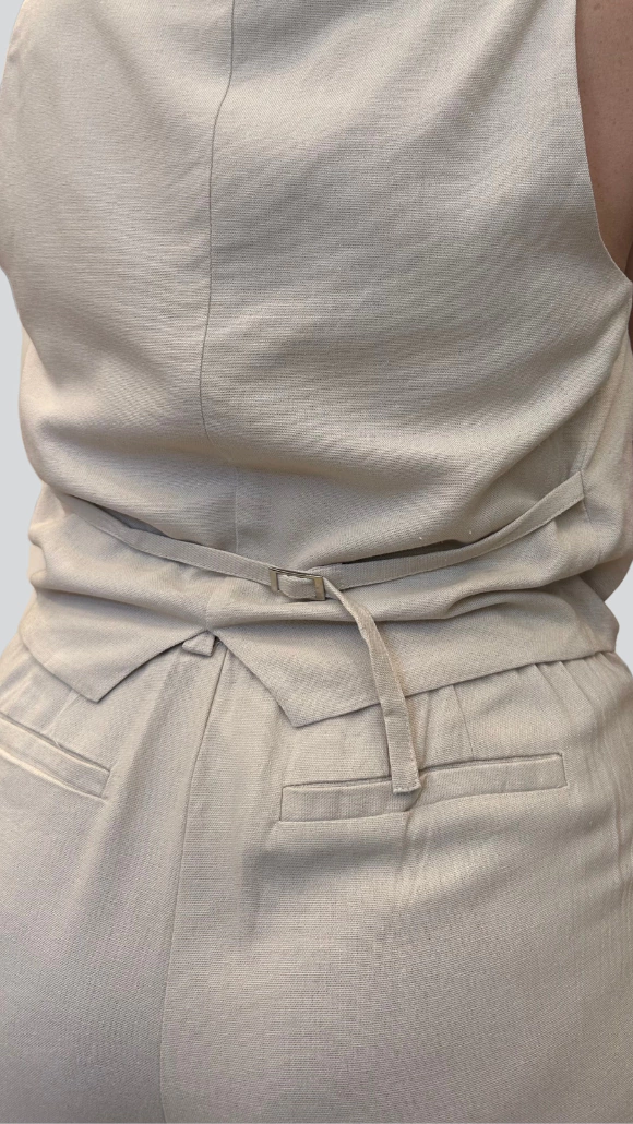 Liviano, fresco y cómodo, este pantalón de lino es un clásico del verano. De corte recto y con elástico en la parte trasera de la cintura, se adapta con suavidad al cuerpo. Los bolsillos laterales aportan practicidad sin perder elegancia, ideal para acompañarte todos los días.